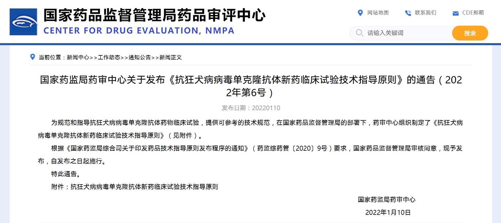 國家藥監(jiān)局藥審中心關(guān)于發(fā)布《抗狂犬病病毒單克隆抗體新藥臨床試驗(yàn)技術(shù)指導(dǎo)原則》的通告(2022年第6號(hào))