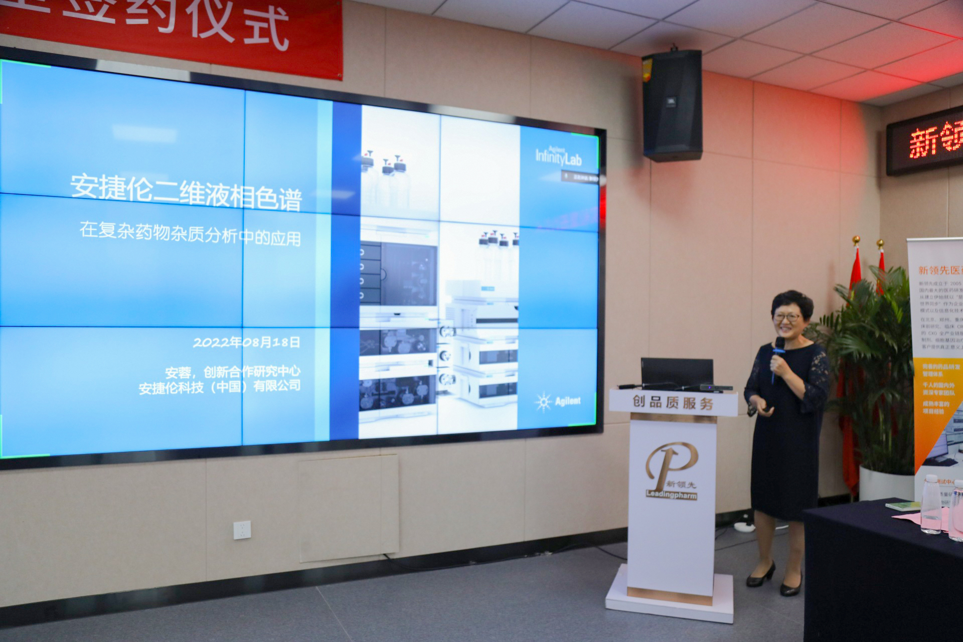 新領(lǐng)先醫(yī)藥總裁高世靜女士在致辭中,首先對推動(dòng)本次合作的雙方領(lǐng)導(dǎo)和到場見證的專家和嘉賓表示由衷的感謝。她表示,本次合作得到了新領(lǐng)先董事長陶新華先生的大力支持。新領(lǐng)先是一家為全球制藥企業(yè)提供涵蓋創(chuàng)新藥、改良型新藥、仿制藥在內(nèi)的CXO全產(chǎn)業(yè)鏈服務(wù)的高新技術(shù)企業(yè),致力于攻克藥品研發(fā)全生命周期過程中各種技術(shù)問題,用創(chuàng)新的方式為客戶提供包括高端制劑研發(fā)、創(chuàng)新藥臨床研究、質(zhì)量體系建設(shè)、醫(yī)學(xué)方案設(shè)計(jì)指導(dǎo)等在內(nèi)的全面解決方案,贏得了近400家客戶的認(rèn)可。新領(lǐng)先始終秉承“以客戶為中心”的服務(wù)理念,為客戶創(chuàng)造最大的價(jià)值,這點(diǎn)與安捷倫公司高度一致。安捷倫作為生命科學(xué)診斷和應(yīng)用化學(xué)市場領(lǐng)域全球領(lǐng)導(dǎo)品牌,在儀器應(yīng)用和檢測技術(shù)方面的優(yōu)勢突出,希望雙方強(qiáng)強(qiáng)聯(lián)手,依托創(chuàng)新研究聯(lián)合實(shí)驗(yàn)室,實(shí)現(xiàn)優(yōu)勢互補(bǔ),通過相應(yīng)合作課題的研究,更好地服務(wù)雙方共同的客戶,解決行業(yè)中的關(guān)鍵技術(shù)、熱點(diǎn)難題,有效推動(dòng)行業(yè)的發(fā)展。也希望通過新領(lǐng)先CXO開放的平臺,協(xié)同產(chǎn)業(yè)鏈和供應(yīng)鏈合作伙伴,實(shí)現(xiàn)更多以滿足臨床需求為根本的新技術(shù)、新產(chǎn)品上市,解決患者的用藥需求。